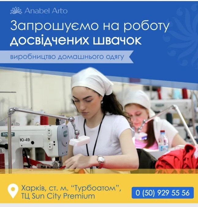 Швейна фабрика Anabel Arto працює у Харкові. Запрошує кваліфікованих швачок на постійну роботу.