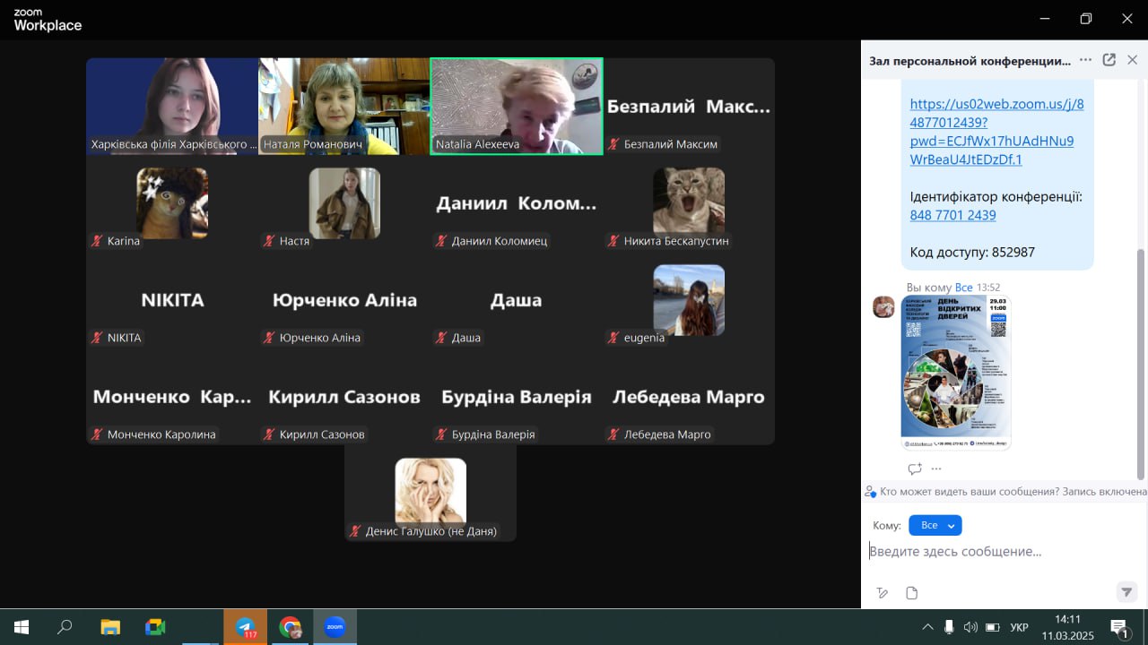 Протягом березня у коледжі проводилась профорієнтаційна робота у вигляді конференцій на платформі ZOOM як з представниками шкіл із залученням Харківського обласного центру зайнятості (ХОЦЗ) , так і зі студентами коледжу та ВУЗів. Відбулася зустріч з учнями школи №22 м. Харків. Завдяки профорієнтаційній роботі здобувачі освіти мали можливість зрозуміти, який вид професійної діяльності їм більше підходить; оцінити власні здібності, інтереси, можливості та усвідомлено обрати майбутню професію; оцінити власний потенціал та розробити стратегію кар’єрного зростання. Для студентів нашого коледжу проведено зустрічі з представниками НТУ “ХПІ” та ХНУ ім. В.Н. Каразіна, метою яких було ознайомлення з умовами здачі НМТ в цьому році та зі спеціальностями університетів.