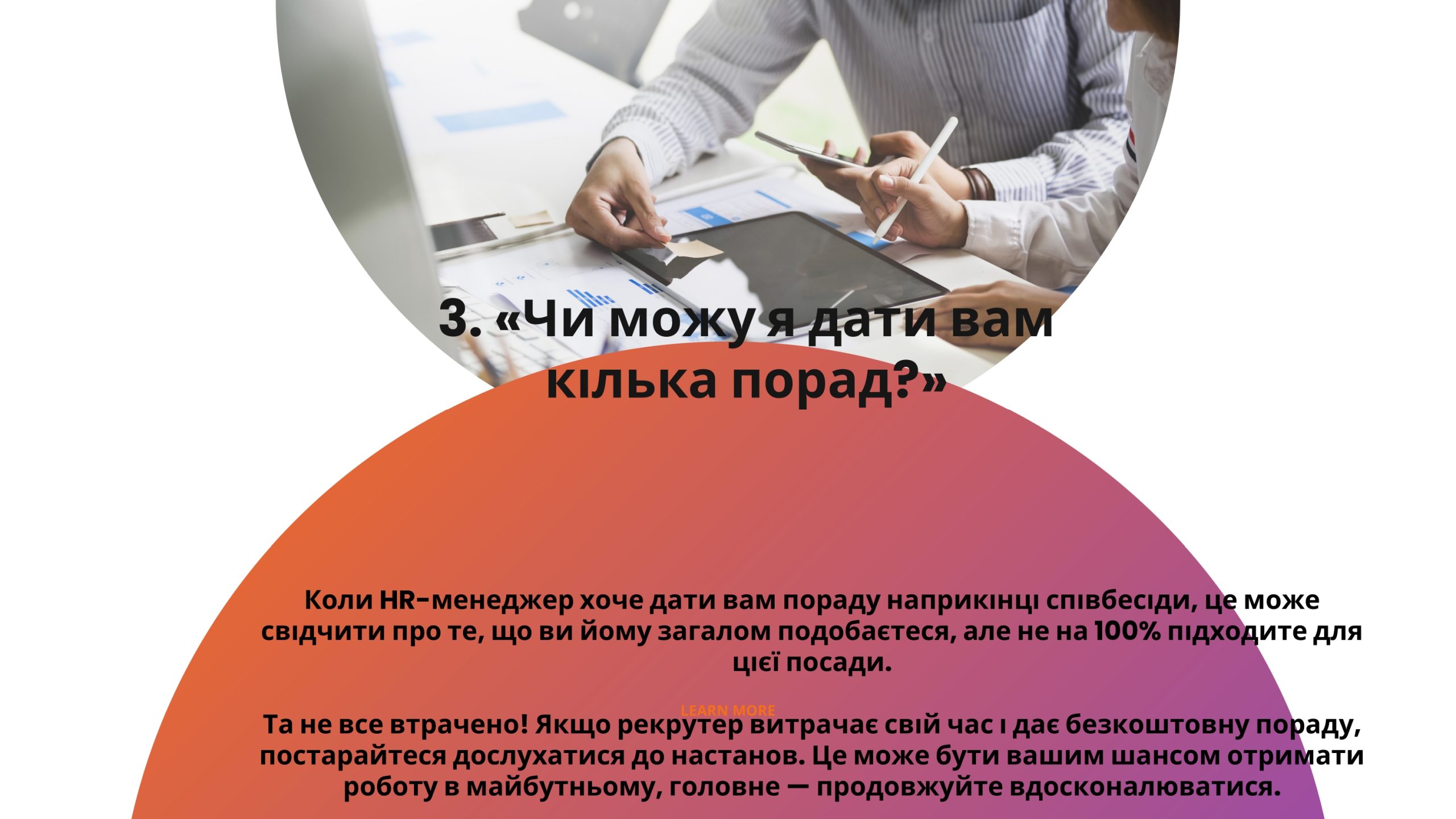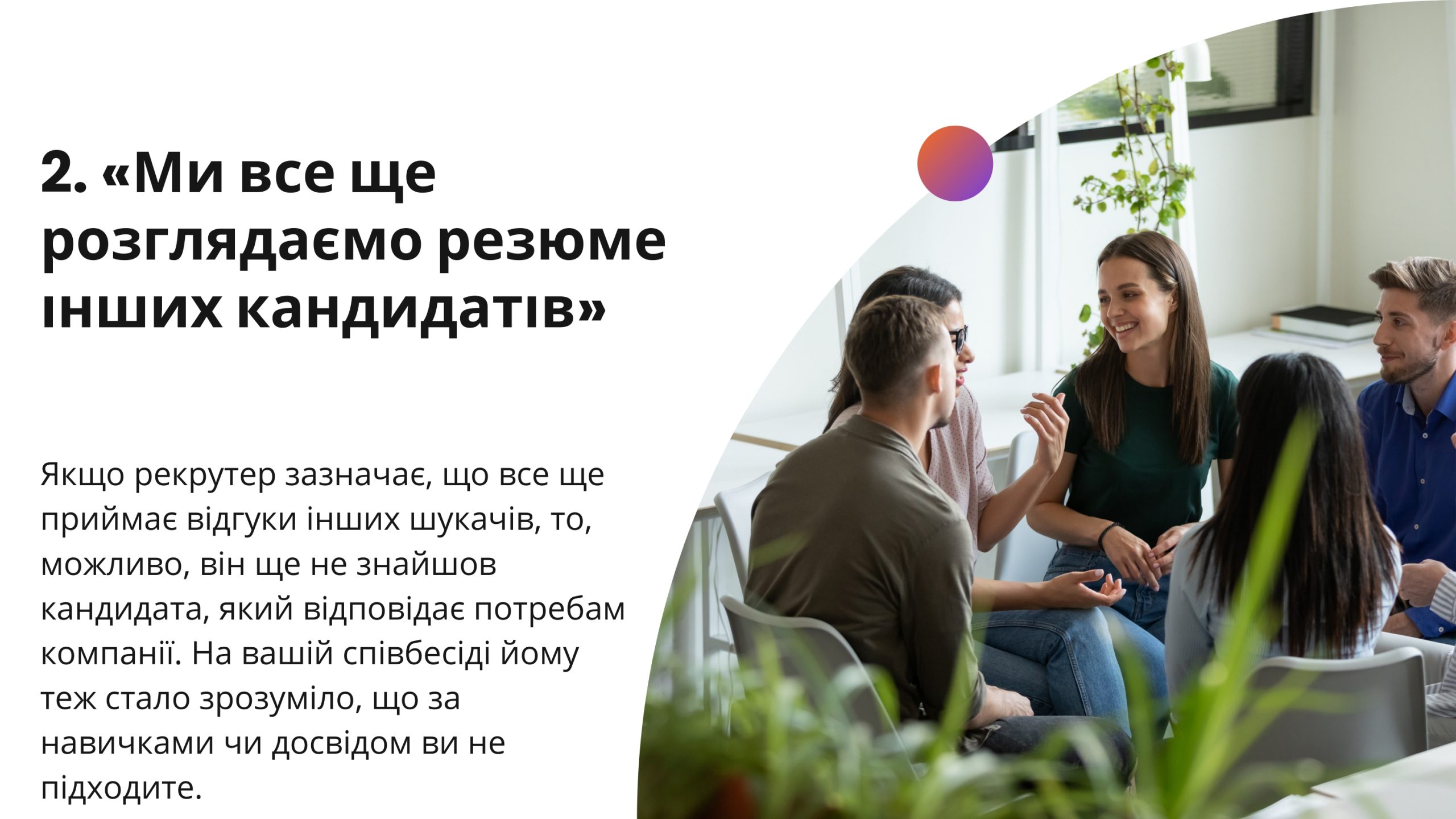3) Кандидат готовий вийти на роботу за 1 день. Якщо кандидат вже не працює, то це нікого не здивує. Але, якщо кандидат не погоджується відпрацювати хоча б 2 тижні на попередній роботі та якісно передати справи, то для роботодавця це знак, що з ними кандидат може вчинити так само.