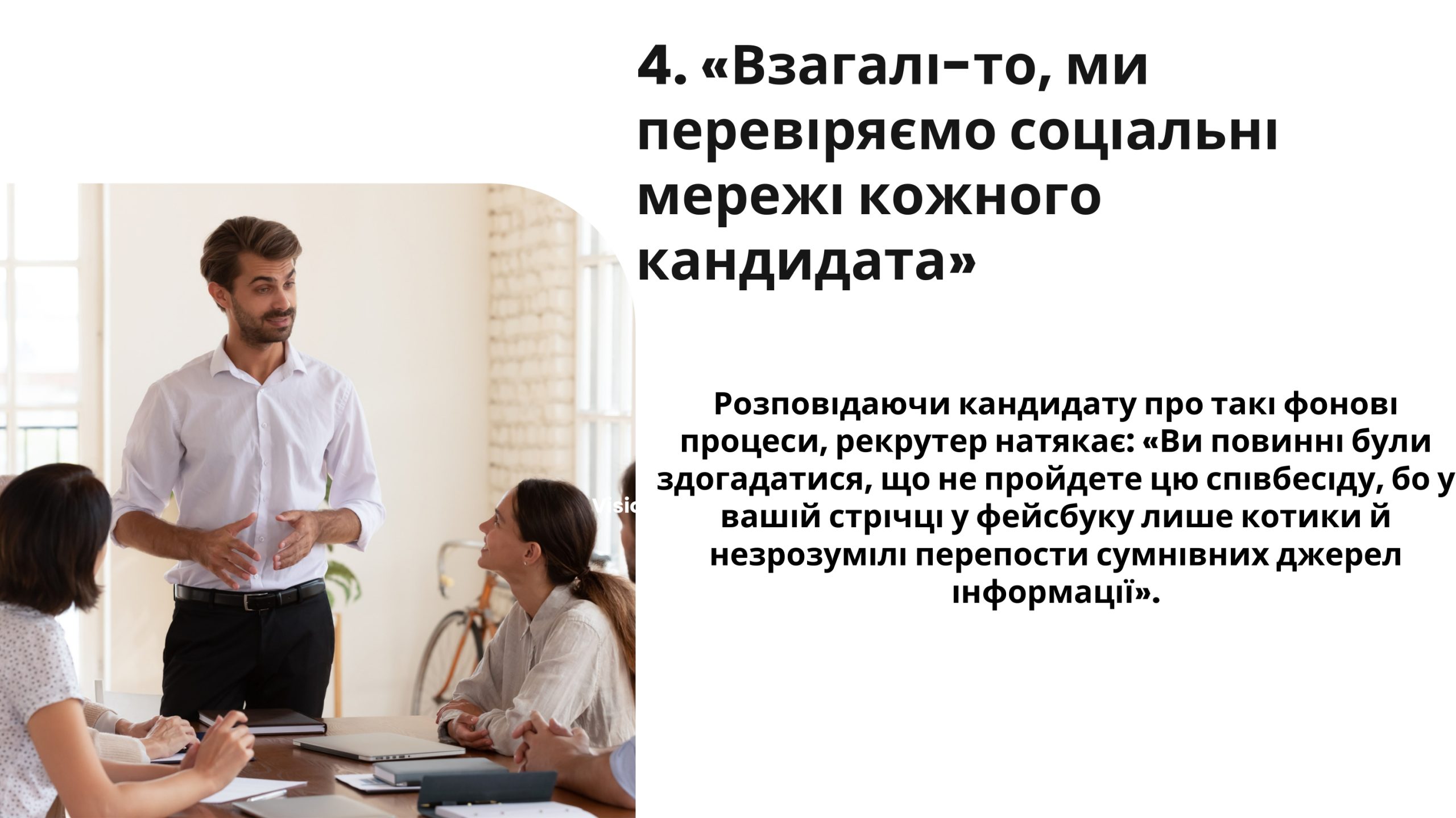 4) Забагато секретів. У кожному бізнесі є конфіденційна інформація. Але якщо кандидату не розповідають взагалі нічого, а співбесіда проходить у формі допиту, то тут варто задуматися.