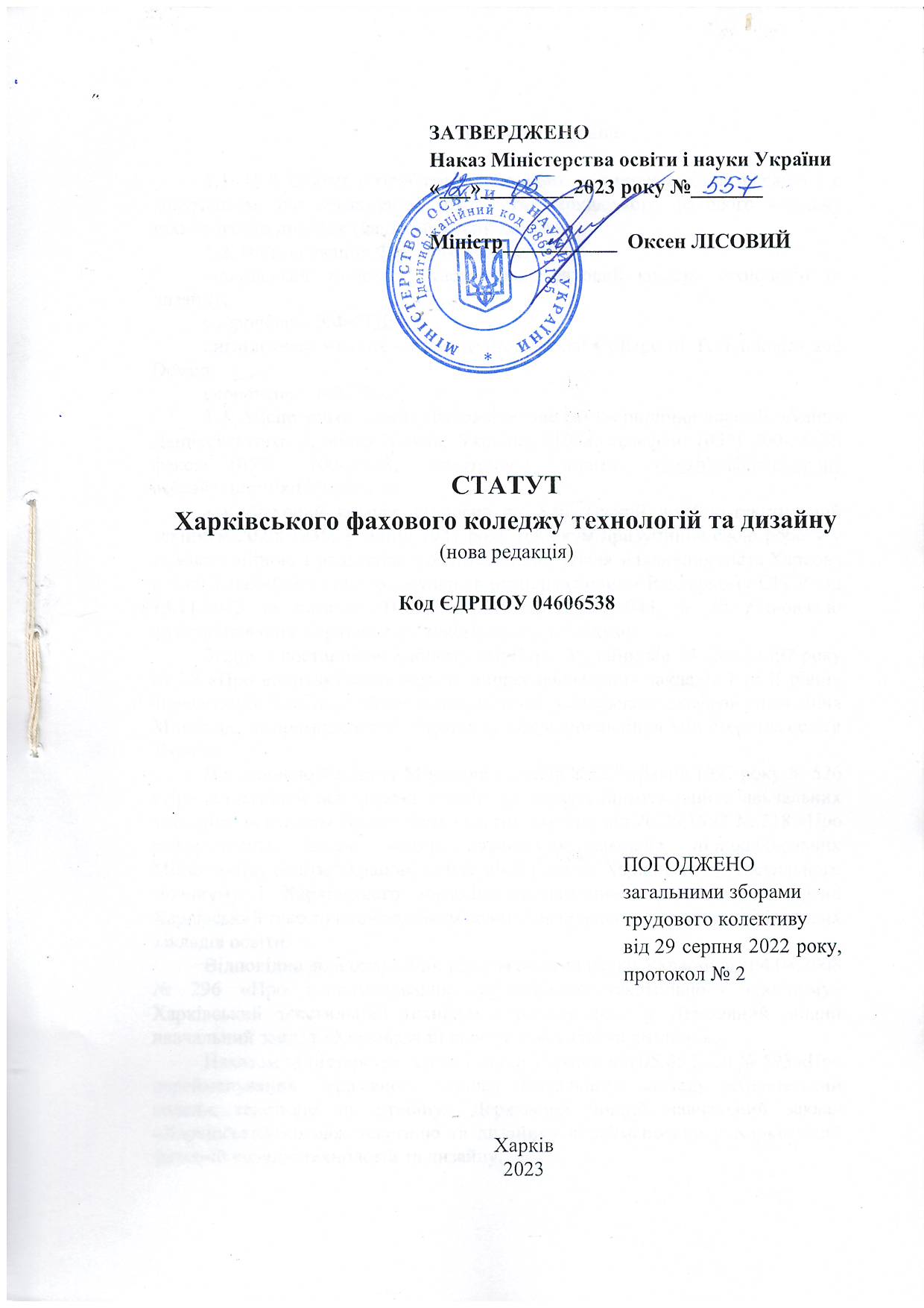 Статут Харківського фахового коледжу технологій та дизайну