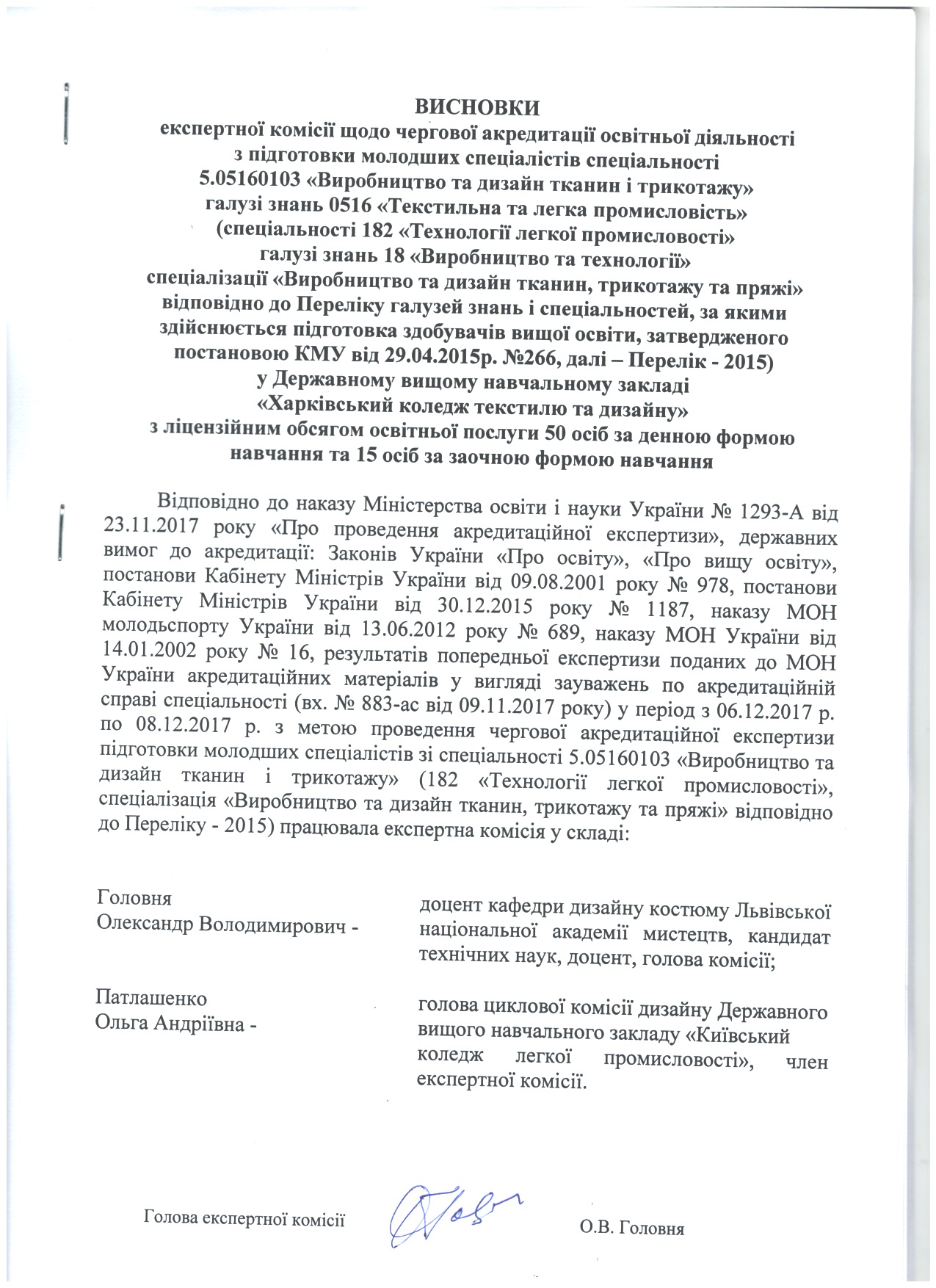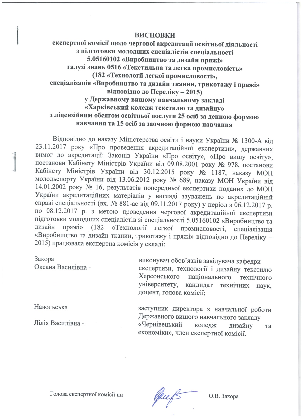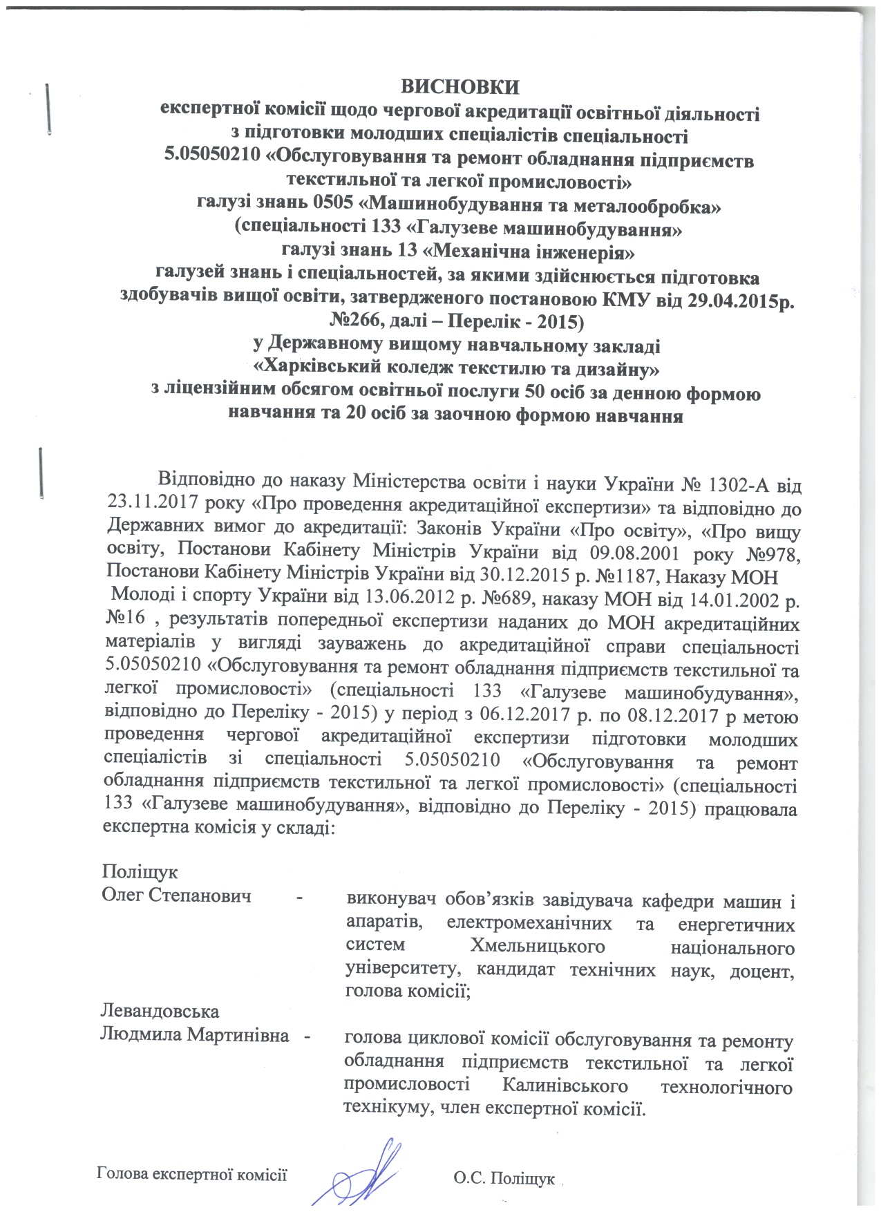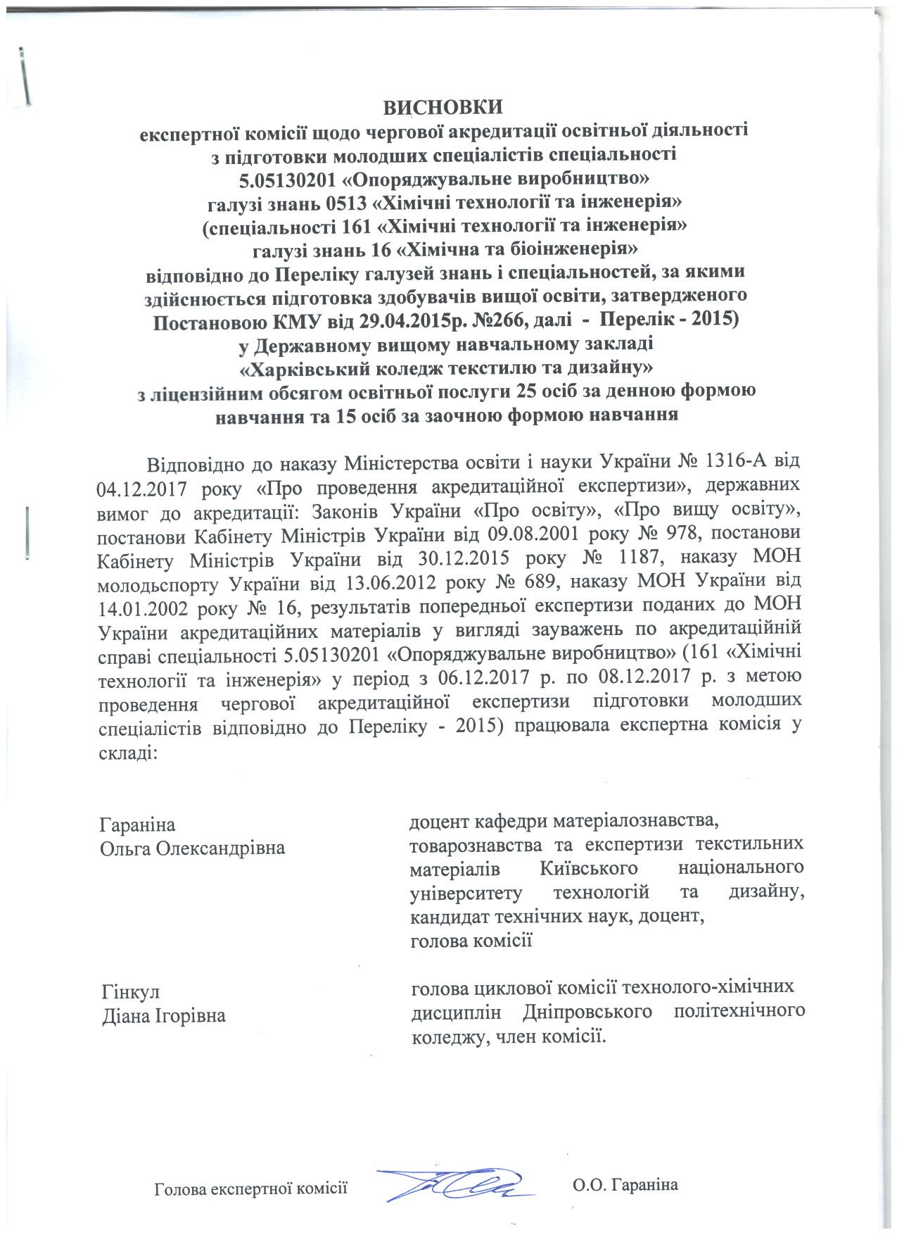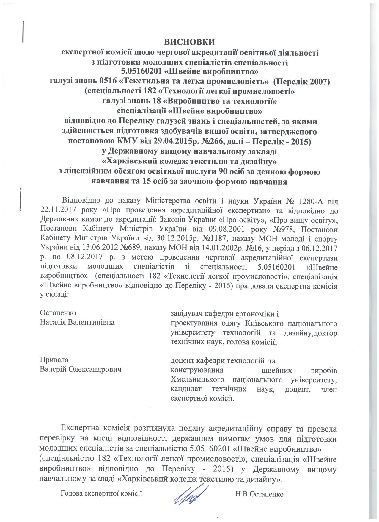 Відповідно до наказів Міністерства освіти і науки України № 27-л та № 28-л від 14.01.2016 року «Про проведення акредитаційної експертизи» та відповідно до постановиКабінету Міністрів України від 9 серпня 2001 року №978 «Про затвердження Положення про акредитацію вищих навчальних закладів і спеціальностей у вищих навчальних закладах та вищих професійних училищах» та постанови Кабінету Міністрів України від 27.05. 2014р. № 507 «Про внесення змін до положення про акредитацію вищих навчальних закладів і спеціальностей у вищих навчальних закладах та вищих професійних училищах» у коледжі з 26.01.2016 р. по 28.01.2016 р. з метою проведення чергової акредитаційної експертизи підготовки молодших спеціалістів зі спеціальностей 5.05160203 «Моделювання та конструювання промислових виробів» та 5.04010602«Прикладна екологія» (спеціальності 182 «Технології легкої промисловості», спеціалізація «Моделювання та конструювання промислових виробів» та спеціальності 101 «Екологія» відповідно до Переліку – 2015) працювали експертні комісії.